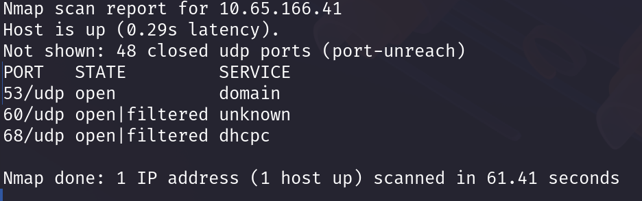 Always start with nmap scan, since we’re looking for UDP based service we should use -sU flag. so final command is: